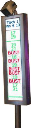 Bei Poker als Cashgame können die Ergebnisse (des Dealers) erfaßt und dargestellt werden. Das ist sowohl auf der kleineren Anzeige (22”) als auf jeder anderen Permanenzanzeige einschließlich der Sammelanzeige möglich. Ein hochwertiges Edelstahlgehäuse paßt in die meisten
